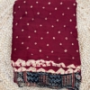 The hallmark of the Ajrakh Bandini saree lies in its vibrant, geometric patterns inspired by centuries-old techniques of Ajrakh block printing and Bandini tie-dye. The fusion of these two iconic styles results in a visually captivating design, rich in heritage. Each saree is meticulously handwoven, showcasing extraordinary precision and artistry, with delicate embroidery accents that elevate its beauty to new heights.