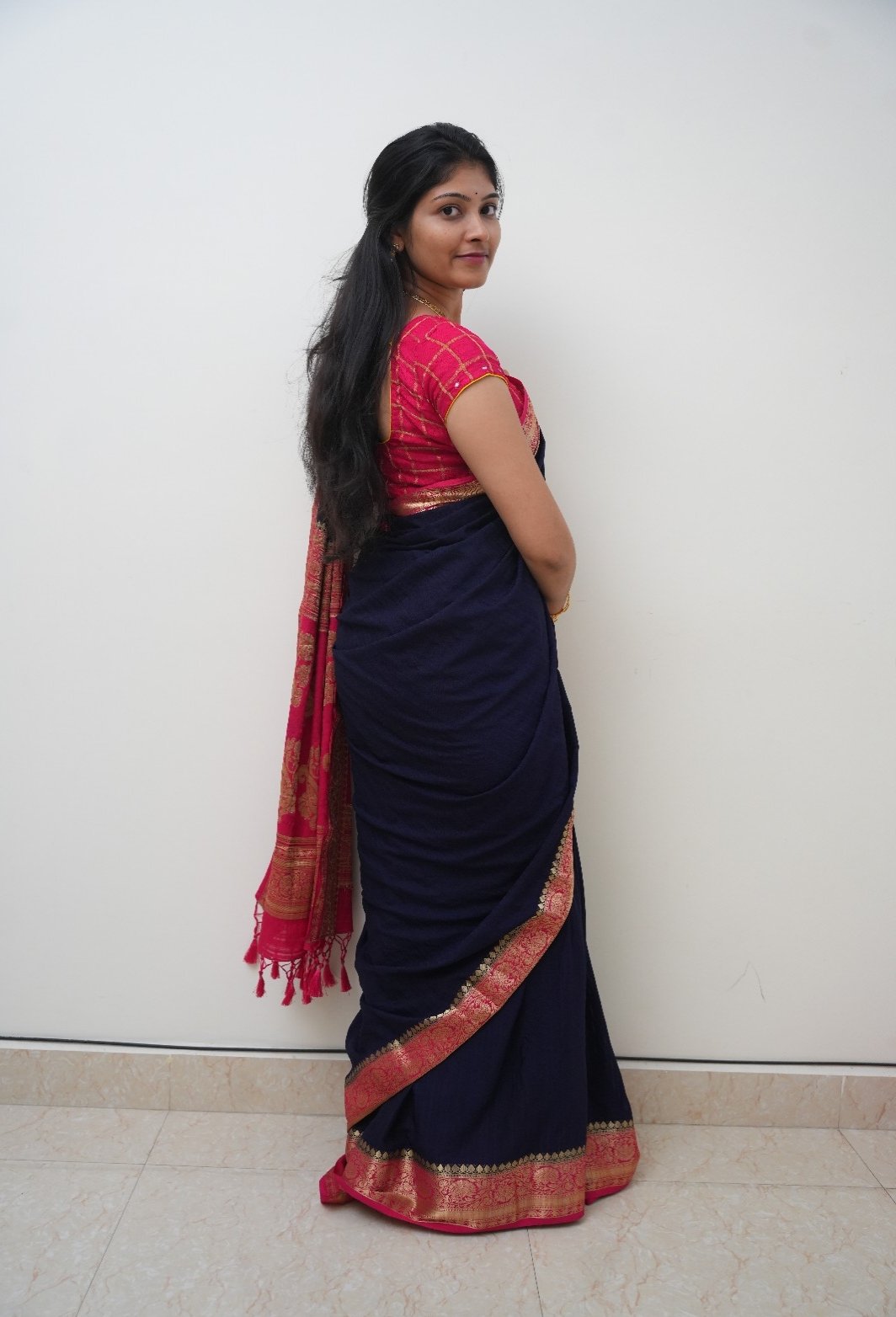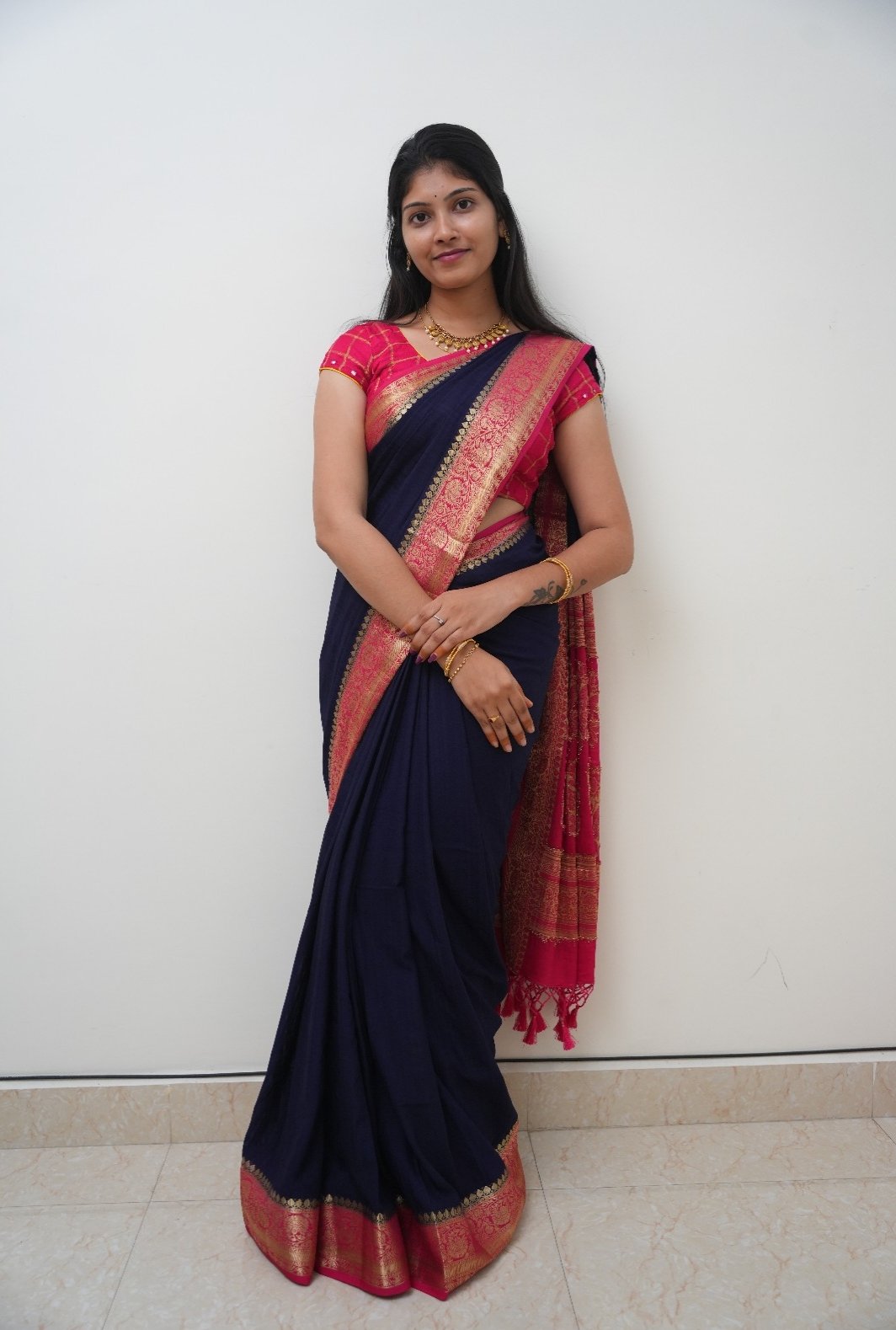 Pure matka silk saree with contrast blouse