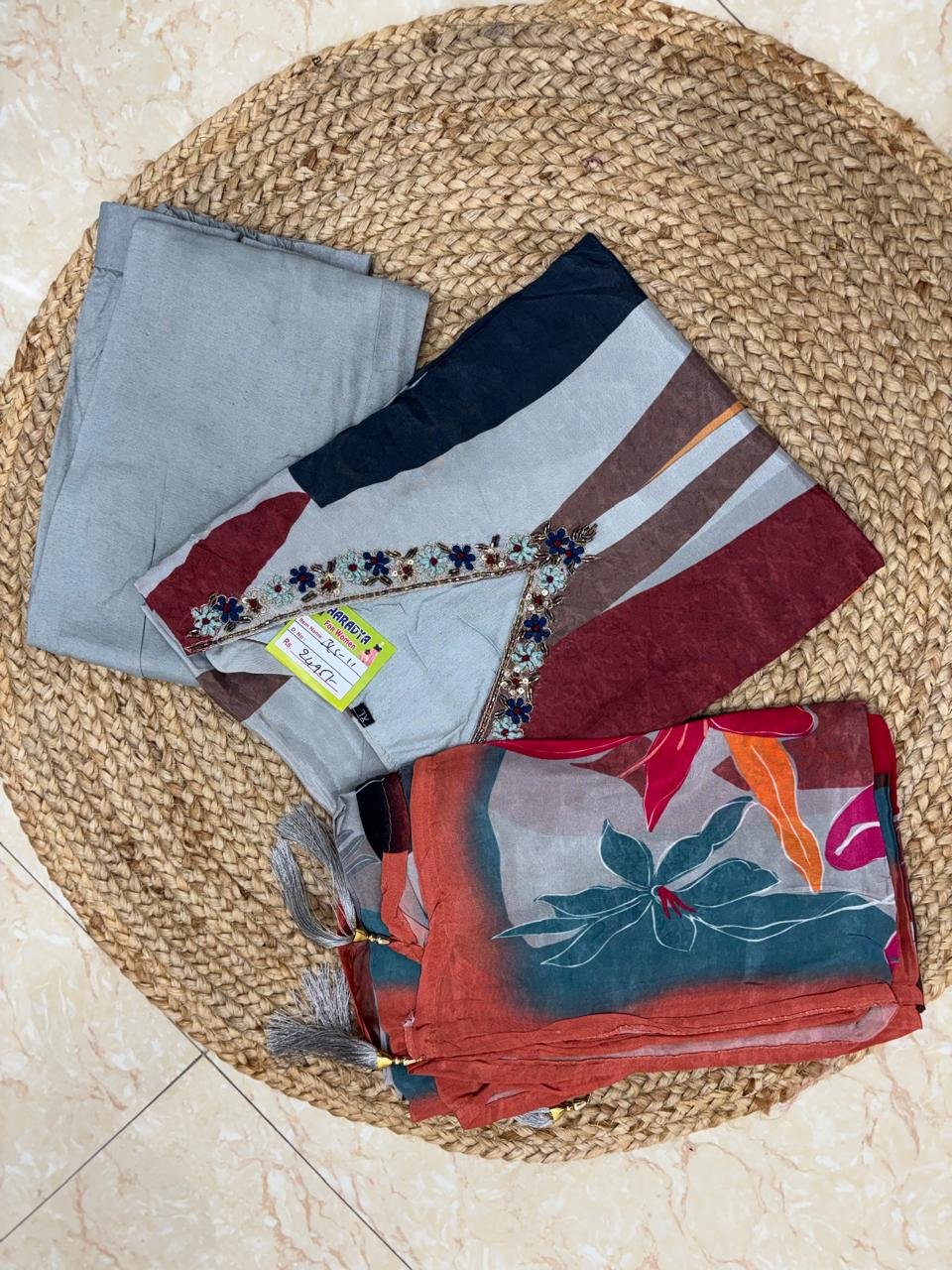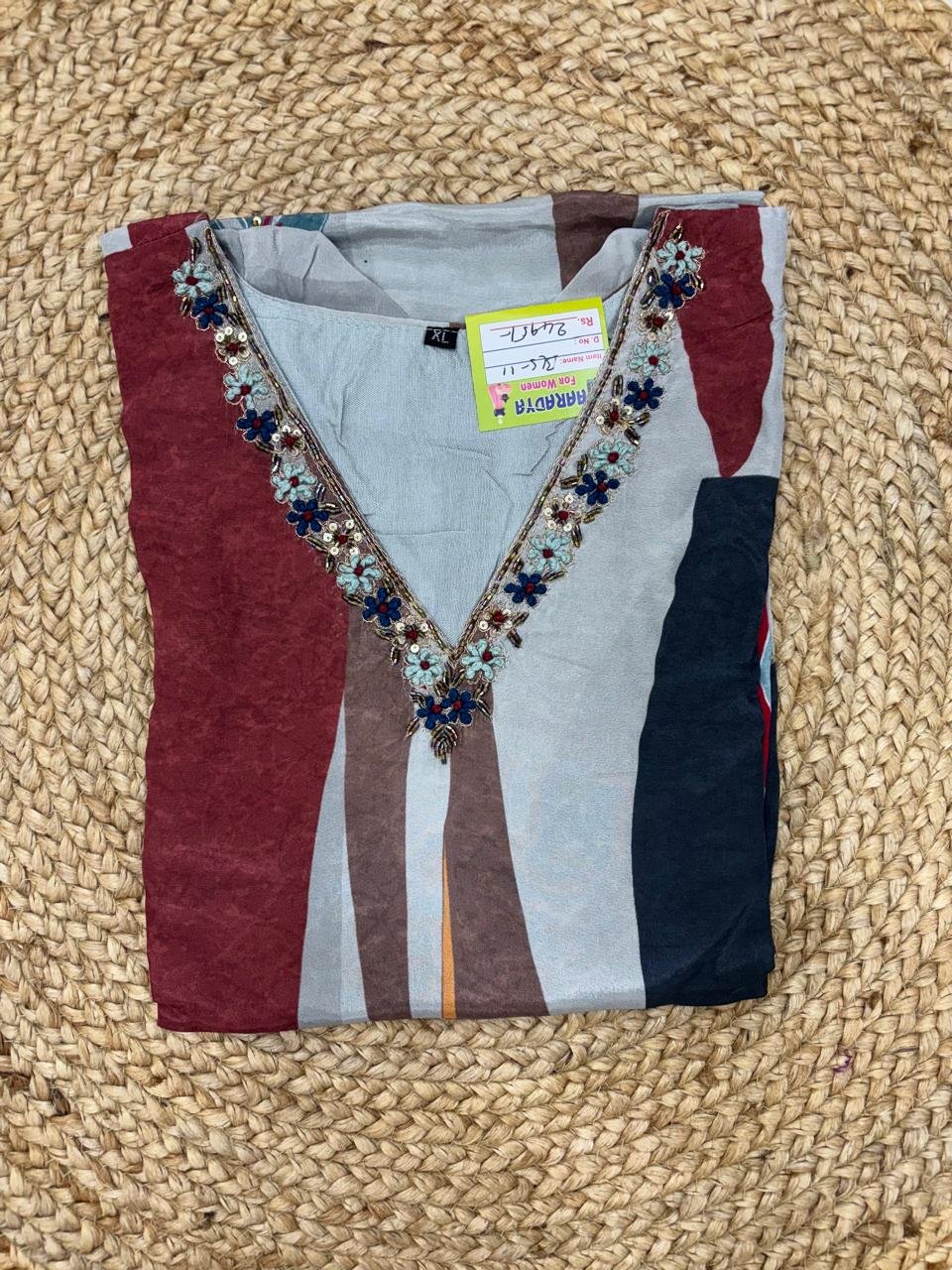 Step into a world of luxurious tradition with Araadya’s Pure Crape Kurti, a piece that beautifully blends modern design with timeless craftsmanship. Whether you’re a saree enthusiast or someone who appreciates the elegance of heritage-inspired fashion, this kurti will elevate your collection with its rich fabric, exquisite embroidery, and premium quality.